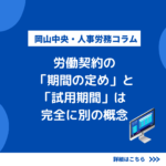 採用時によく使われる「試用期間」ですが、実は“契約期間の有無(有期・無期)”とはまったく別の制度です。 この違いを理解していないと、「試用期間だから3ヶ月で終わりにできる」と誤解し、思わぬトラブルにつながることがあります。まずは両者の関係をシンプルに押さえることが重要です。 ① 労働契約の期間の定め(有期/無期) これは 働く期間そのものがどう設定されているか。 無