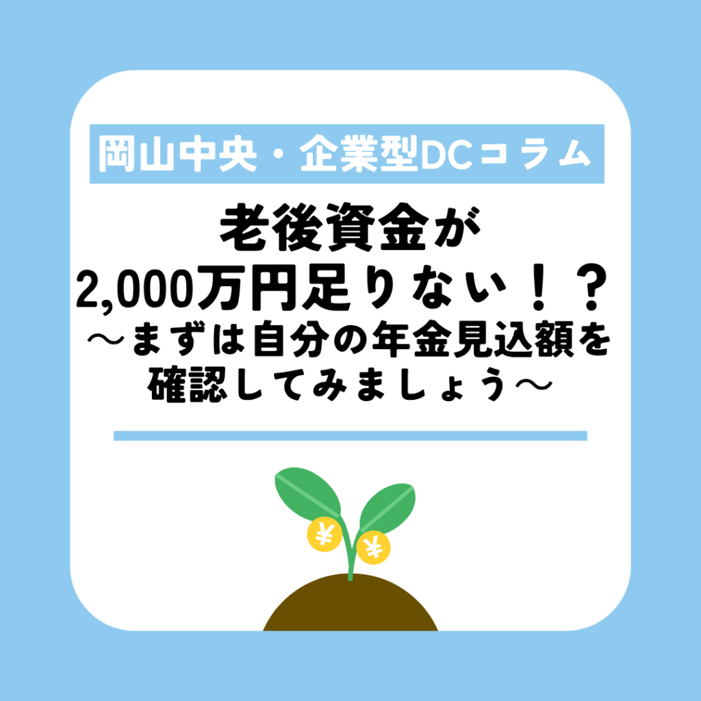 【DCコラム】老後資金が2,000万円足りない!? ~まずは自分の年金見込額を確認してみましょう~|社労士 岡山・倉敷