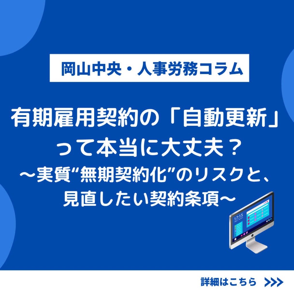 【人事労務コラム】有期雇用契約の「自動更新」って本当に大丈夫?~実質“無期契約化”のリスクと、見直したい契約条項~|社労士 岡山・倉敷