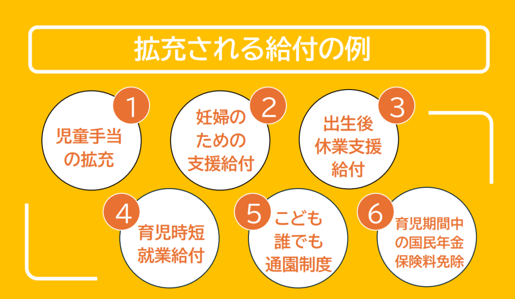 児童手当の拡充や妊婦のための支援給付などの給付の拡充に充てられます。