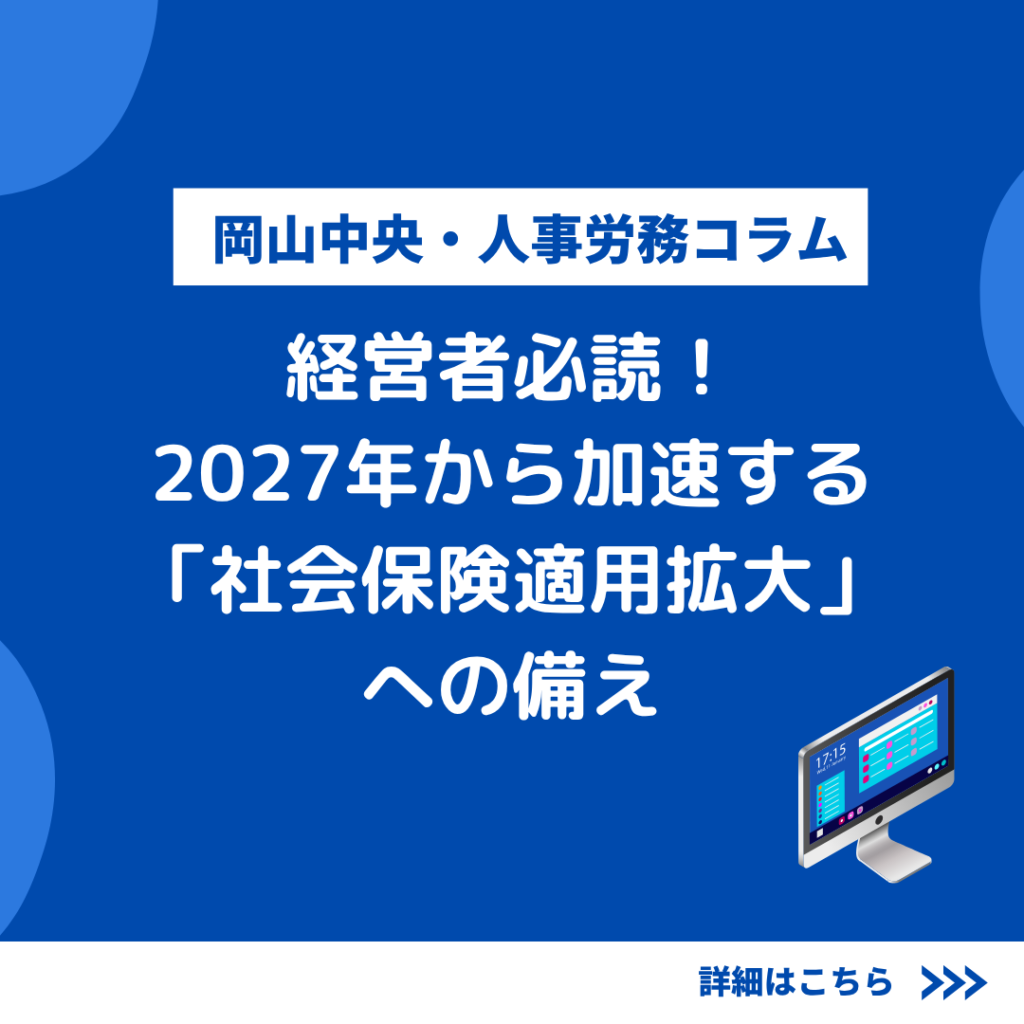 【人事労務コラム】経営者必読!2027年から加速する「社会保険適用拡大」への備え|社労士 岡山・倉敷